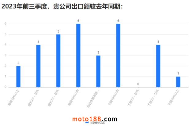 今年前三季度出口形勢較去年同期略有好轉(zhuǎn),多數(shù)企業(yè)出口額同比上漲(54.8%),或基本持平(9.7%)。