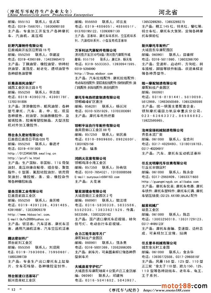 2010版摩托車配件生產(chǎn)企業(yè)大全