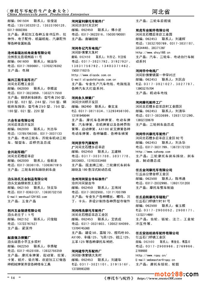 2010版摩托車配件生產(chǎn)企業(yè)大全
