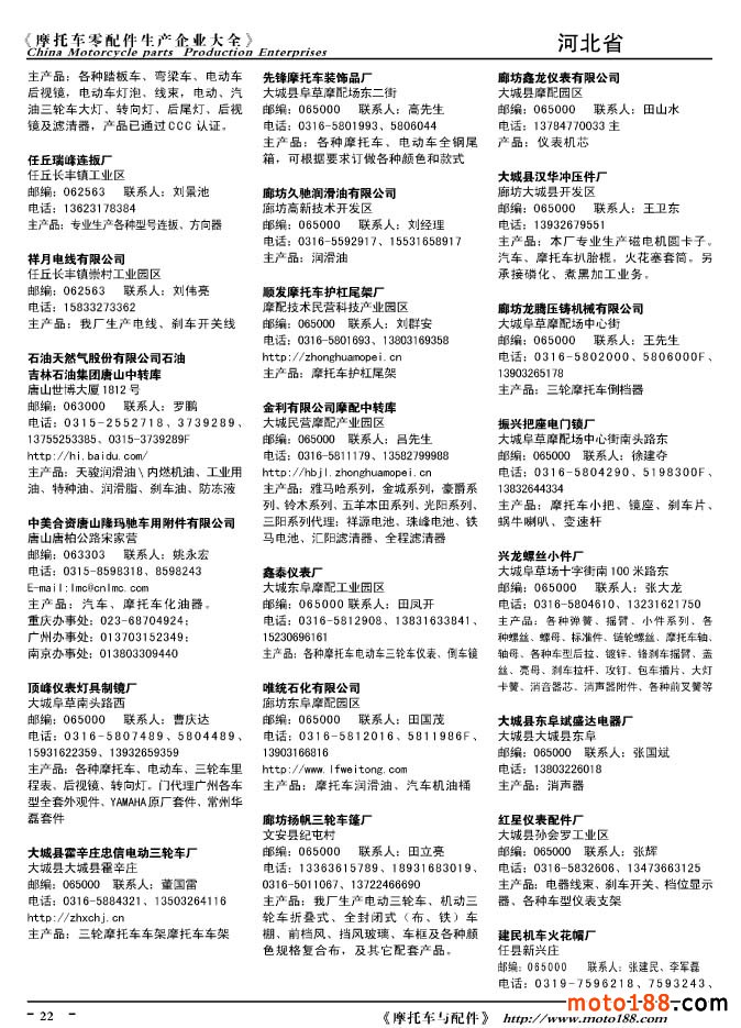 2010版摩托車(chē)配件生產(chǎn)企業(yè)大全