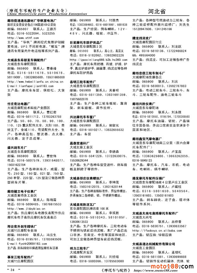 2010版摩托車配件生產(chǎn)企業(yè)大全