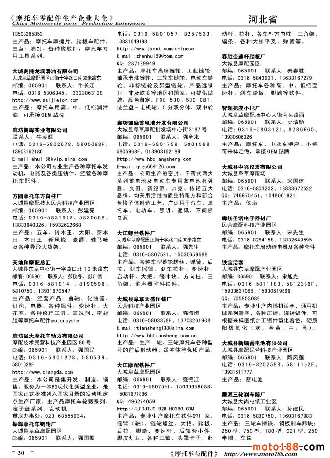 2010版摩托車配件生產(chǎn)企業(yè)大全