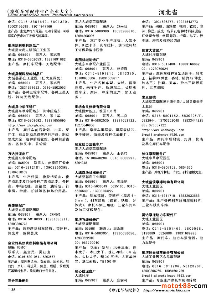 2010版摩托車配件生產(chǎn)企業(yè)大全