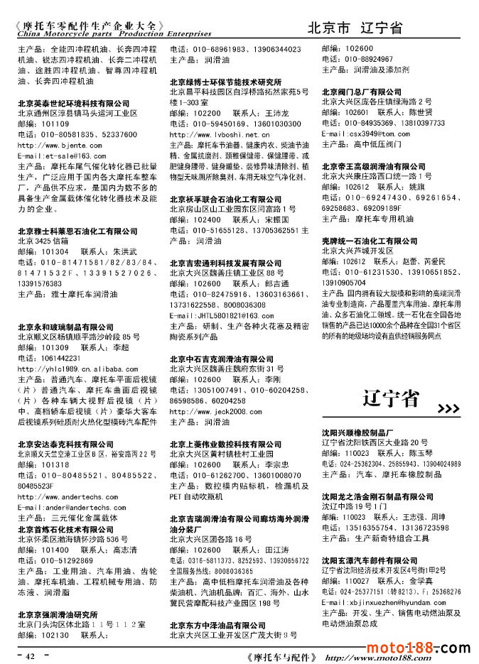 2010版摩托車配件生產(chǎn)企業(yè)大全