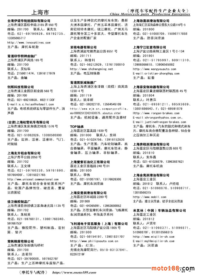 2010版摩托車配件生產(chǎn)企業(yè)大全