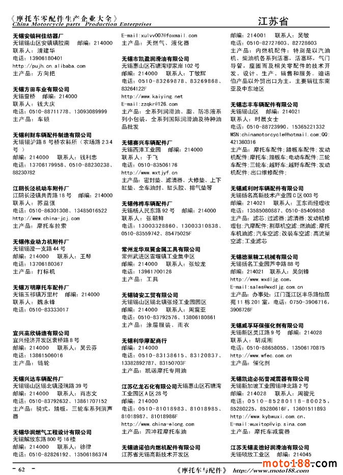 2010版摩托車配件生產(chǎn)企業(yè)大全