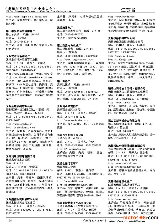 2010版摩托車配件生產(chǎn)企業(yè)大全