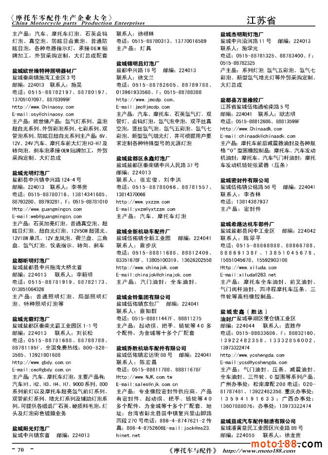 2010版摩托車配件生產(chǎn)企業(yè)大全