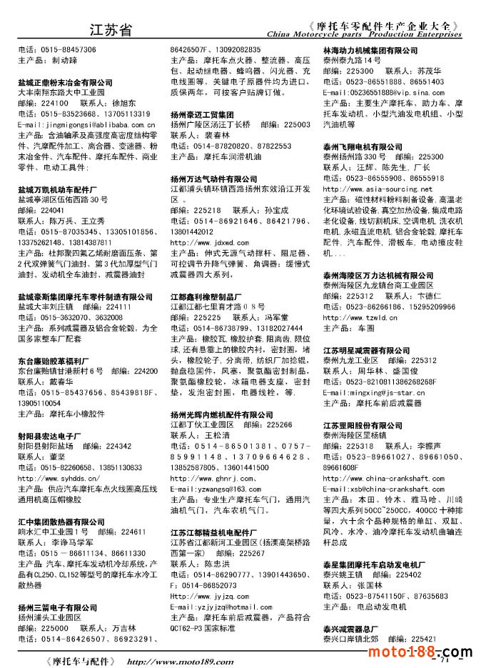 2010版摩托車配件生產(chǎn)企業(yè)大全