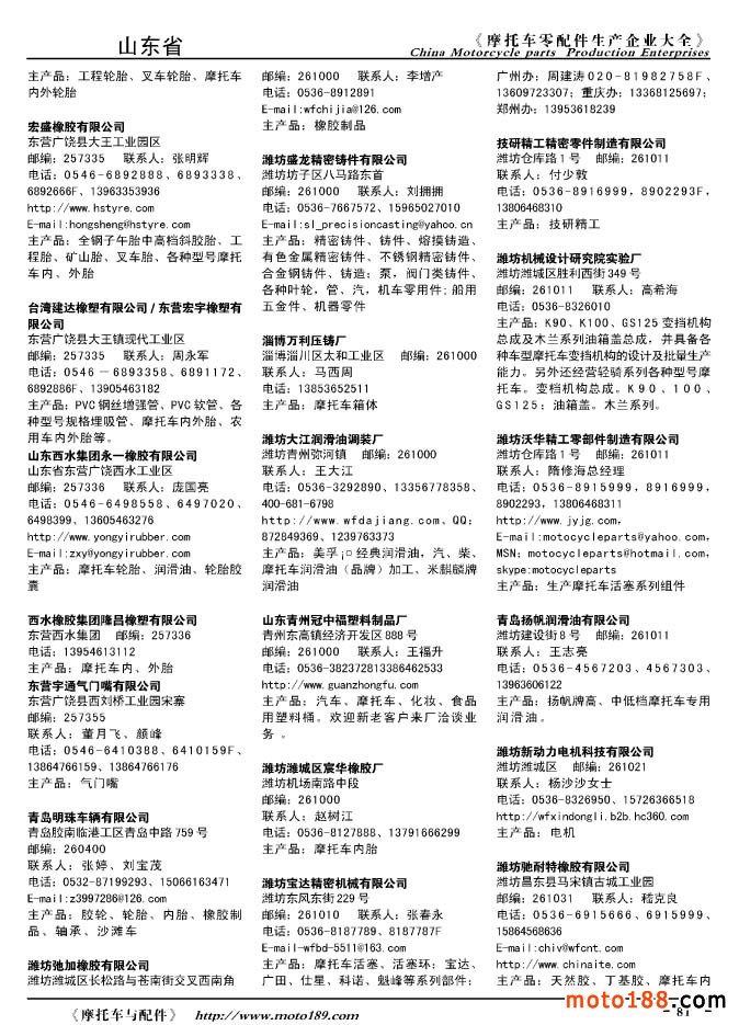 2010版摩托車配件生產(chǎn)企業(yè)大全