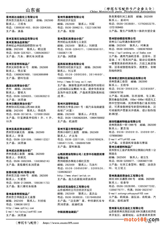 2010版摩托車配件生產(chǎn)企業(yè)大全