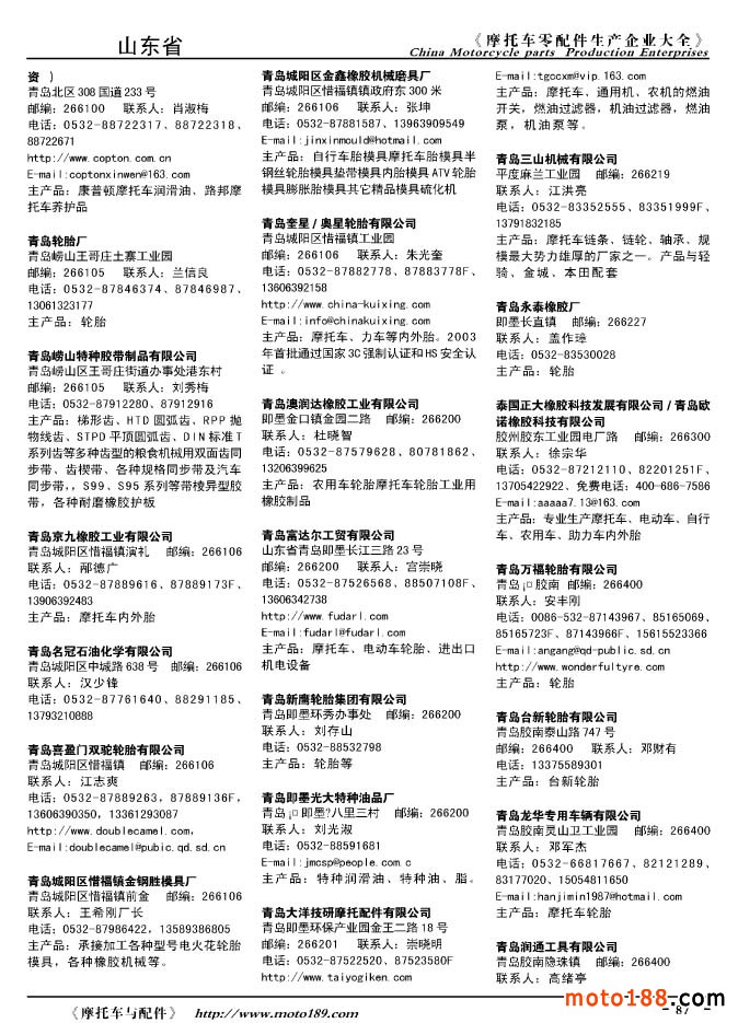 2010版摩托車配件生產(chǎn)企業(yè)大全