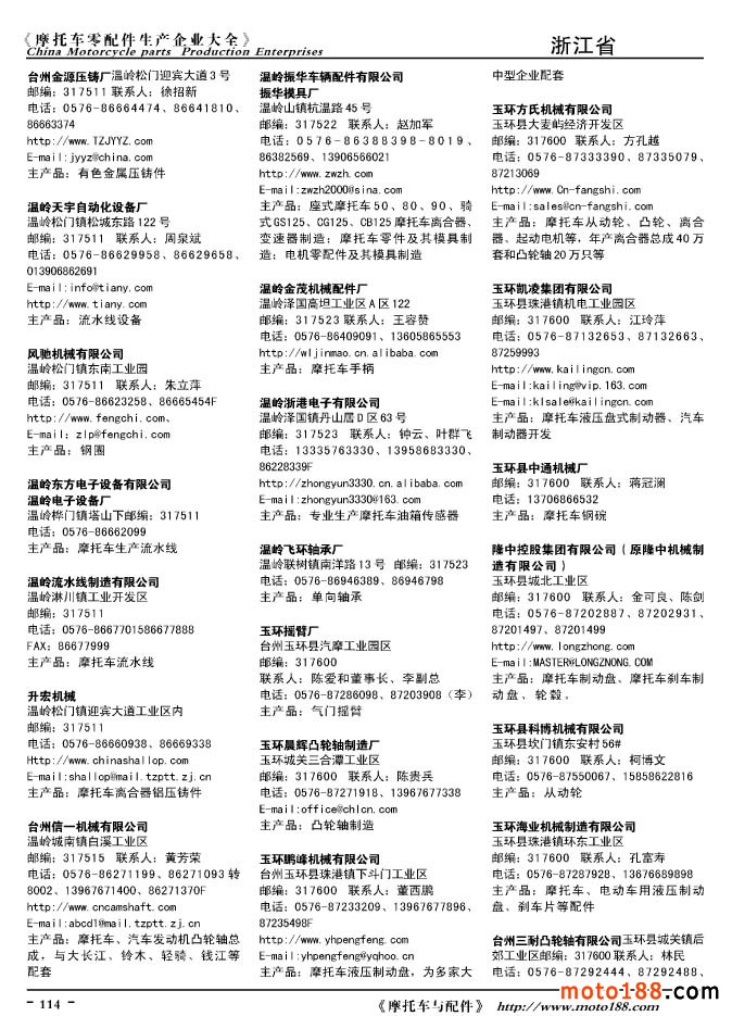 2010版摩托車配件生產(chǎn)企業(yè)大全