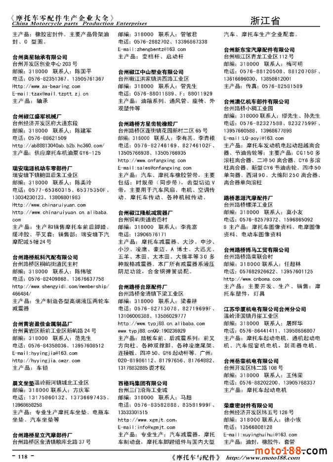 2010版摩托車配件生產(chǎn)企業(yè)大全