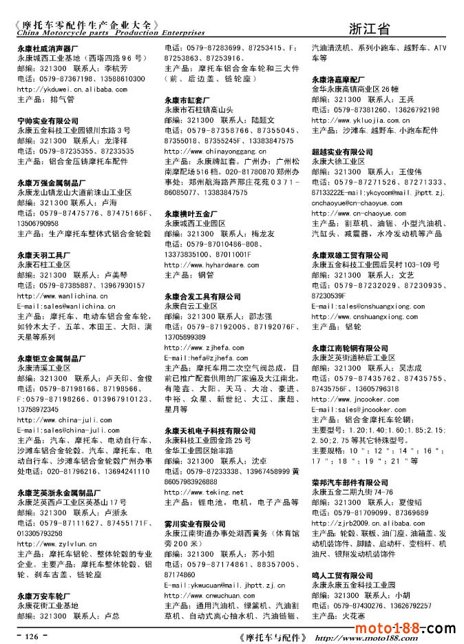 2010版摩托車配件生產(chǎn)企業(yè)大全