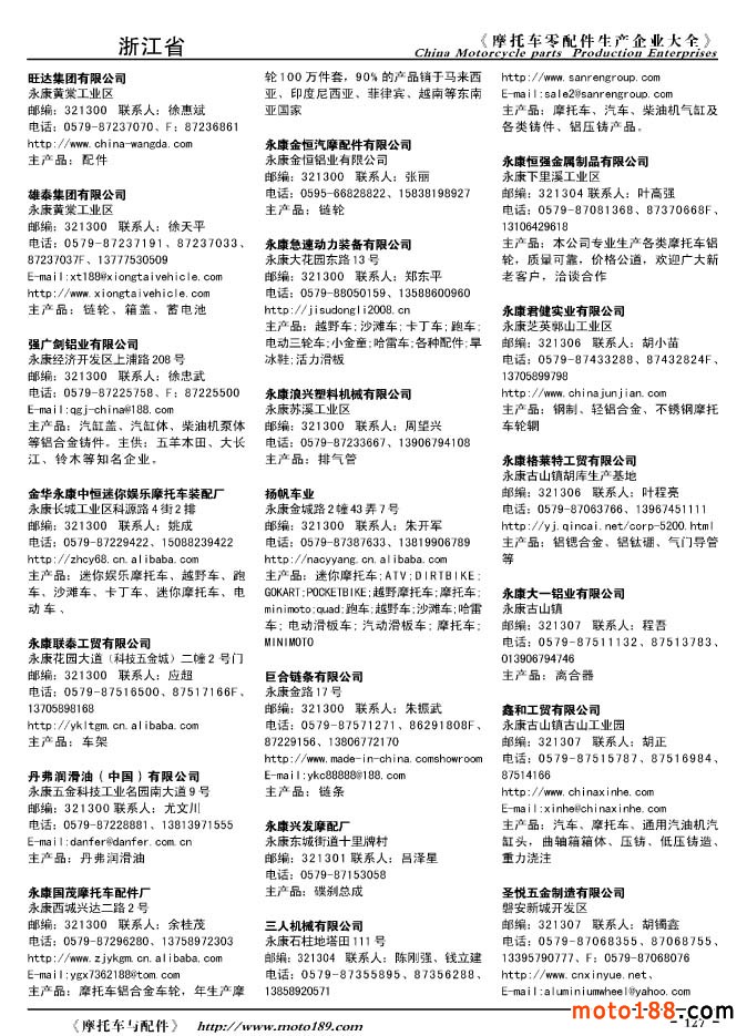 2010版摩托車配件生產(chǎn)企業(yè)大全