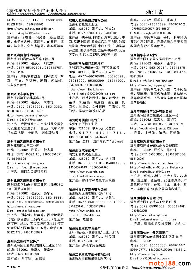 2010版摩托車配件生產(chǎn)企業(yè)大全