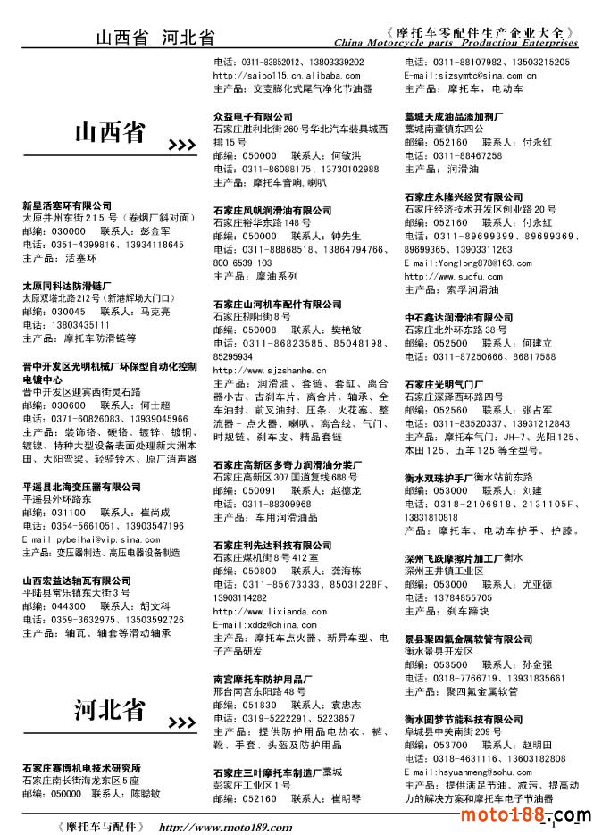 2010版摩托車配件生產(chǎn)企業(yè)大全