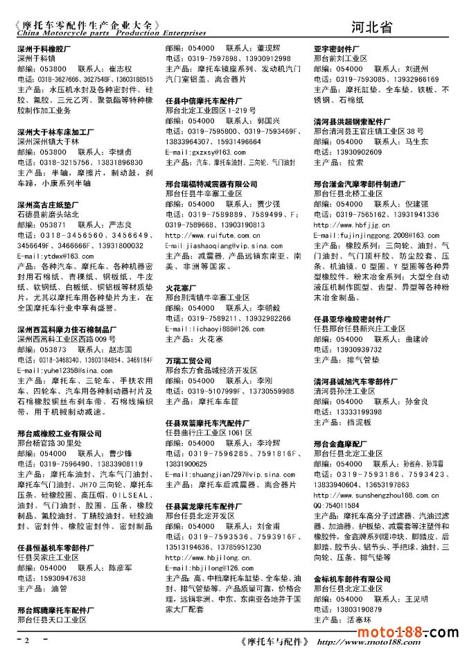 2010版摩托車配件生產(chǎn)企業(yè)大全