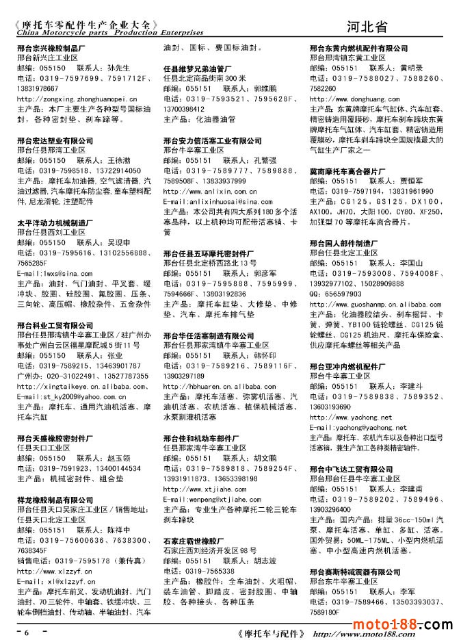 2010版摩托車配件生產(chǎn)企業(yè)大全