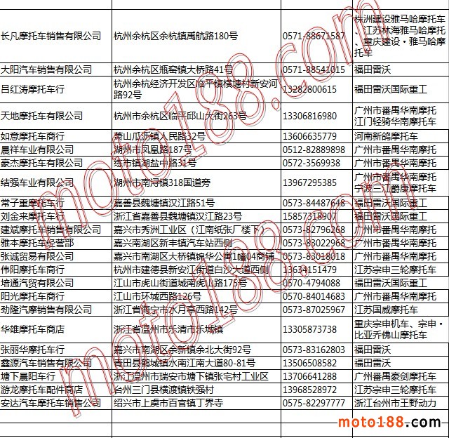 浙江、上海摩托車整車經(jīng)銷商