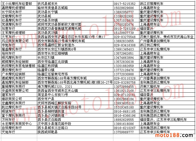 陜西省摩托車經(jīng)銷商