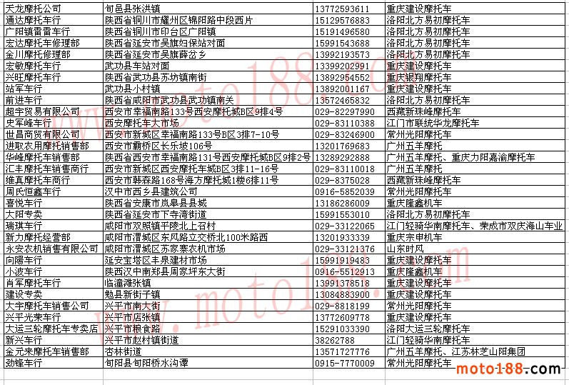 陜西省摩托車經(jīng)銷商