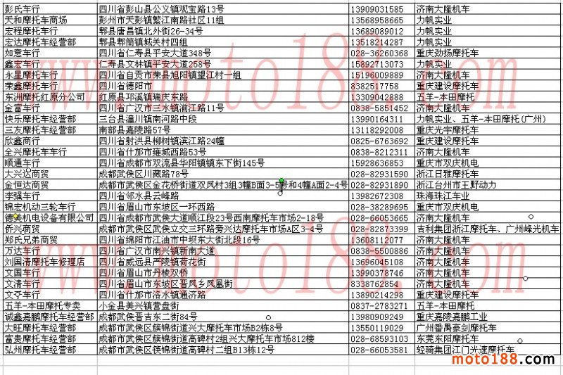 四川省摩托車經(jīng)銷商