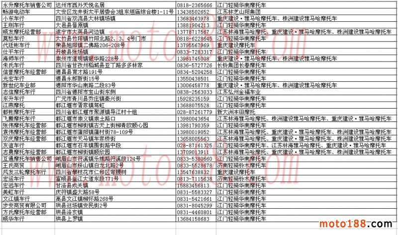 四川省摩托車經(jīng)銷商