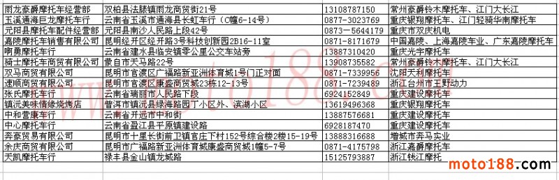 云南省摩托車(chē)經(jīng)銷(xiāo)商