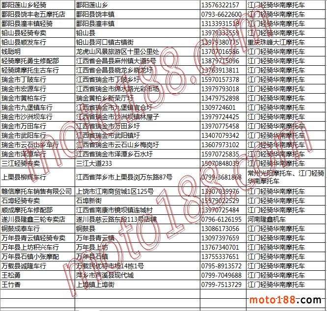 江西省摩托車整車經(jīng)銷商名錄