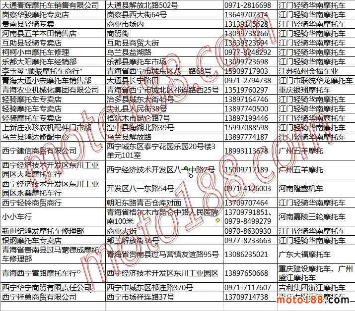 青海省摩托車整車經(jīng)銷商名錄