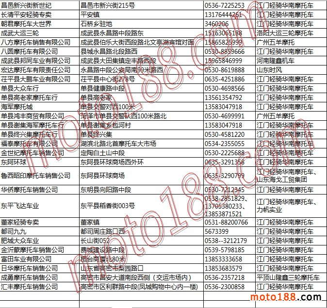 山東省摩托車(chē)整車(chē)經(jīng)銷(xiāo)商名錄