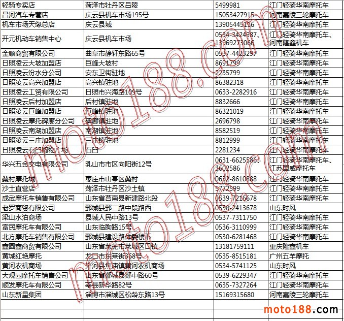 山東省摩托車(chē)整車(chē)經(jīng)銷(xiāo)商名錄