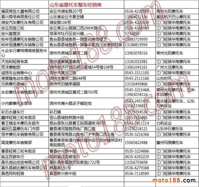 山東省摩托車(chē)整車(chē)經(jīng)銷(xiāo)商名錄