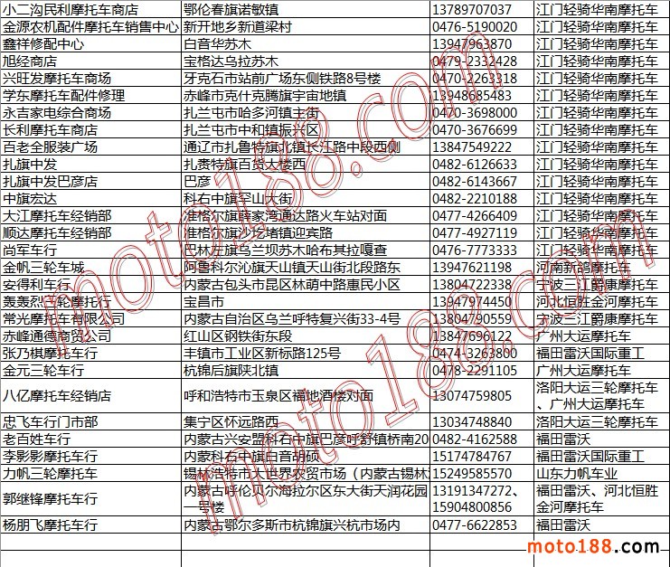 內(nèi)蒙古摩托車整車經(jīng)銷商名錄