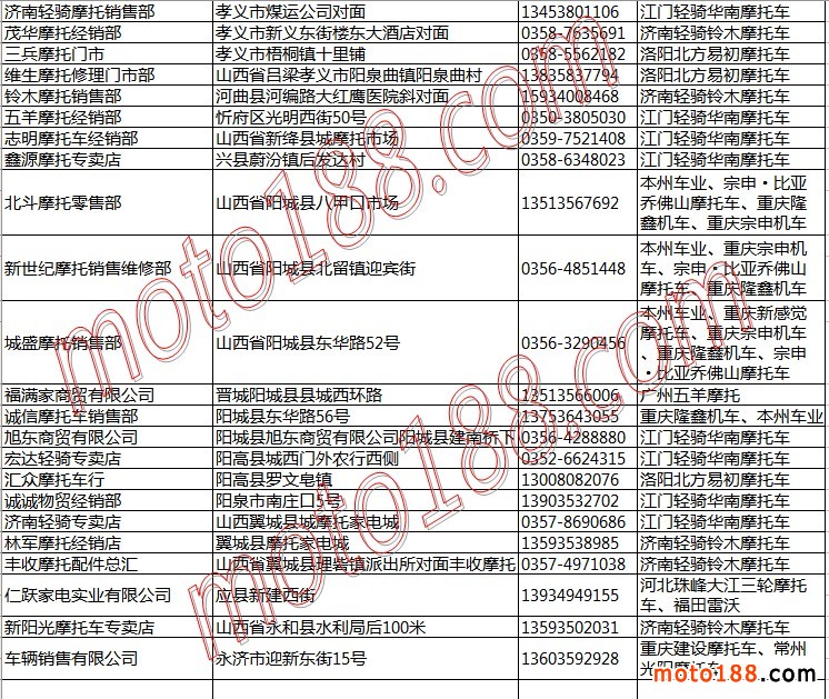 各摩配市場(chǎng)詳細(xì)資料請(qǐng)注冊(cè)我們的VIP會(huì)員咨詢 電話:0515-88436994 QQ:309362965、842467029、1051652573