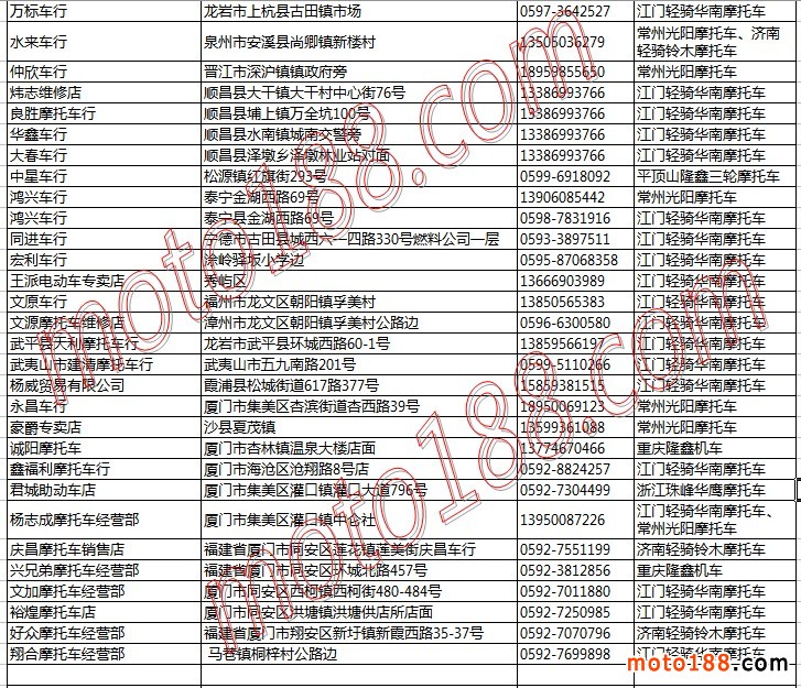 福建省摩托車(chē)整車(chē)經(jīng)銷(xiāo)商名錄