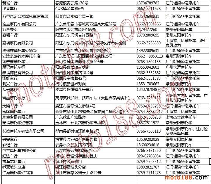 廣東省摩托車(chē)整車(chē)經(jīng)銷(xiāo)商名錄