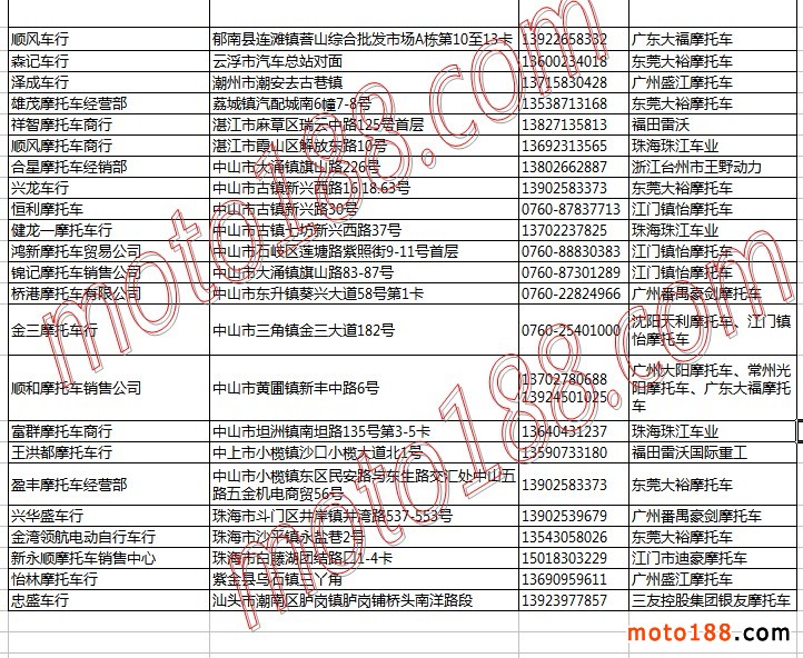 廣東省摩托車(chē)整車(chē)經(jīng)銷(xiāo)商名錄