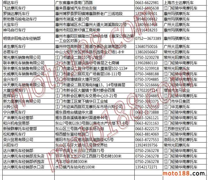 廣東省摩托車(chē)整車(chē)經(jīng)銷(xiāo)商名錄