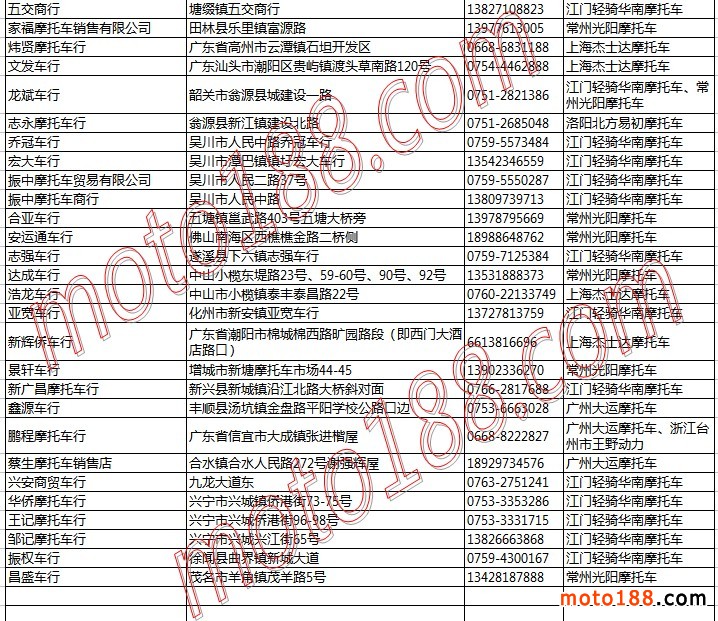 廣東省摩托車整車經(jīng)銷商名錄