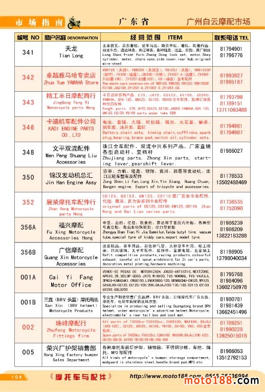 各摩配市場(chǎng)詳細(xì)資料請(qǐng)注冊(cè)我們的VIP會(huì)員咨詢 電話:0515-88436994 QQ:309362965、842467029、1051652573