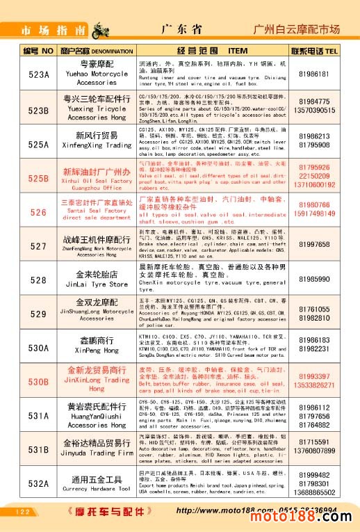 各摩配市場(chǎng)詳細(xì)資料請(qǐng)注冊(cè)我們的VIP會(huì)員咨詢 電話:0515-88436994 QQ:309362965、842467029、1051652573