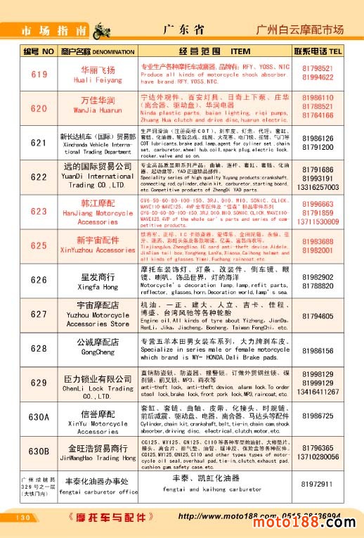 各摩配市場(chǎng)詳細(xì)資料請(qǐng)注冊(cè)我們的VIP會(huì)員咨詢 電話:0515-88436994 QQ:309362965、842467029、1051652573