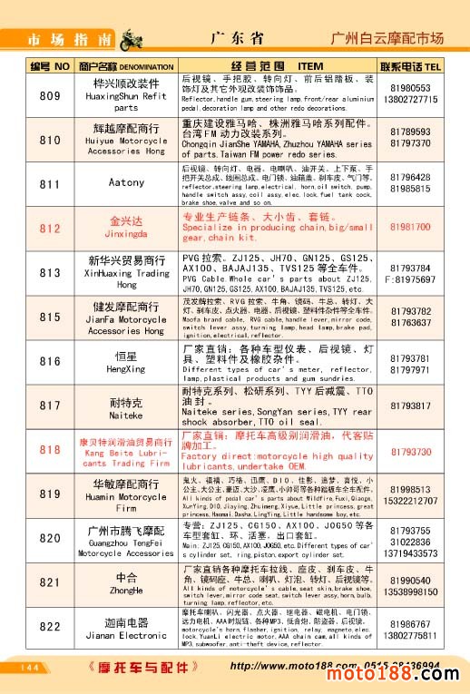 各摩配市場(chǎng)詳細(xì)資料請(qǐng)注冊(cè)我們的VIP會(huì)員咨詢 電話:0515-88436994 QQ:309362965、842467029、1051652573