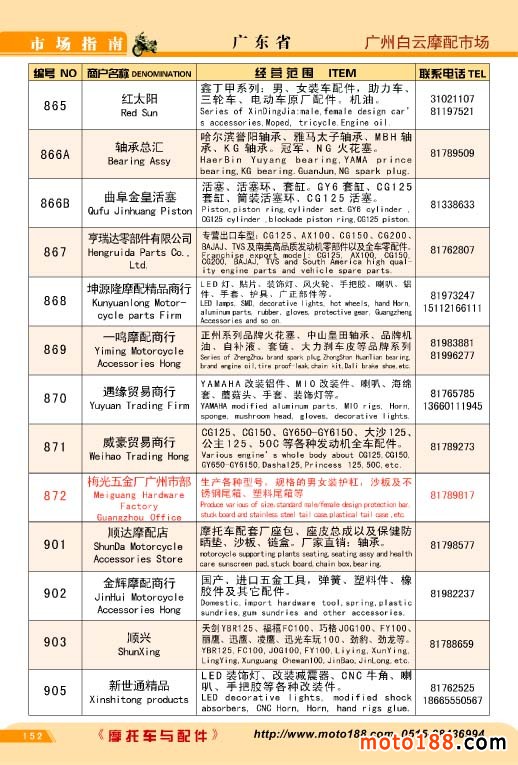 各摩配市場(chǎng)詳細(xì)資料請(qǐng)注冊(cè)我們的VIP會(huì)員咨詢 電話:0515-88436994 QQ:309362965、842467029、1051652573