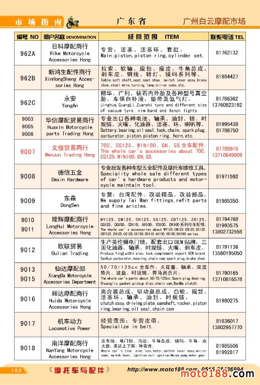 各摩配市場(chǎng)詳細(xì)資料請(qǐng)注冊(cè)我們的VIP會(huì)員咨詢 電話:0515-88436994 QQ:309362965、842467029、1051652573