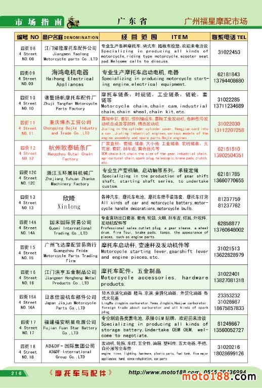 各摩配市場(chǎng)詳細(xì)資料請(qǐng)注冊(cè)我們的VIP會(huì)員咨詢 電話:0515-88436994 QQ:309362965、842467029、1051652573
