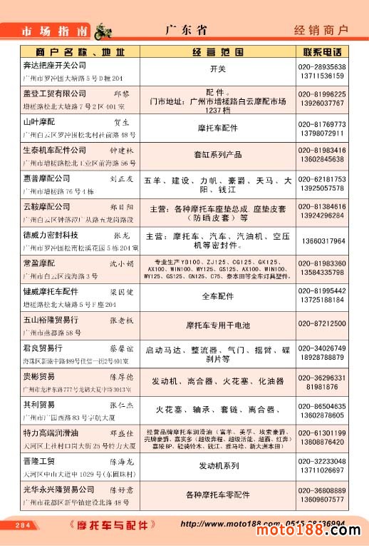 廣東省摩配經(jīng)銷商戶